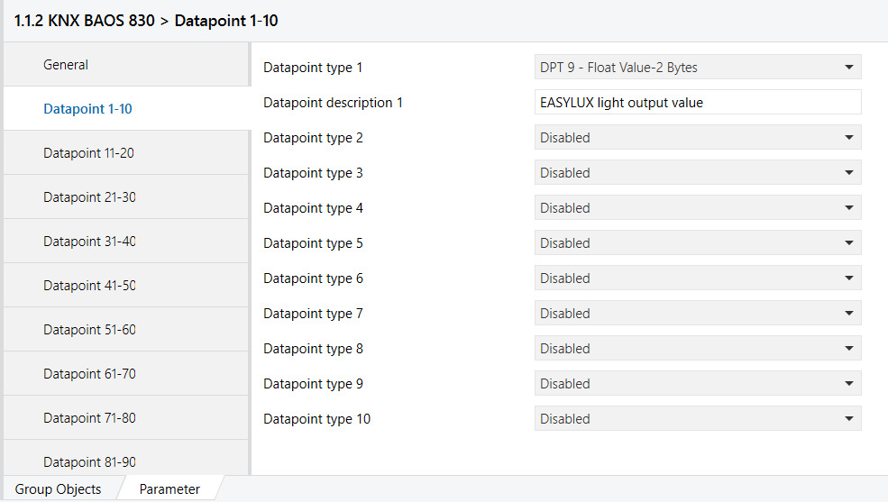 - Temukan data point BAOS yang ingin dikonfigurasi.