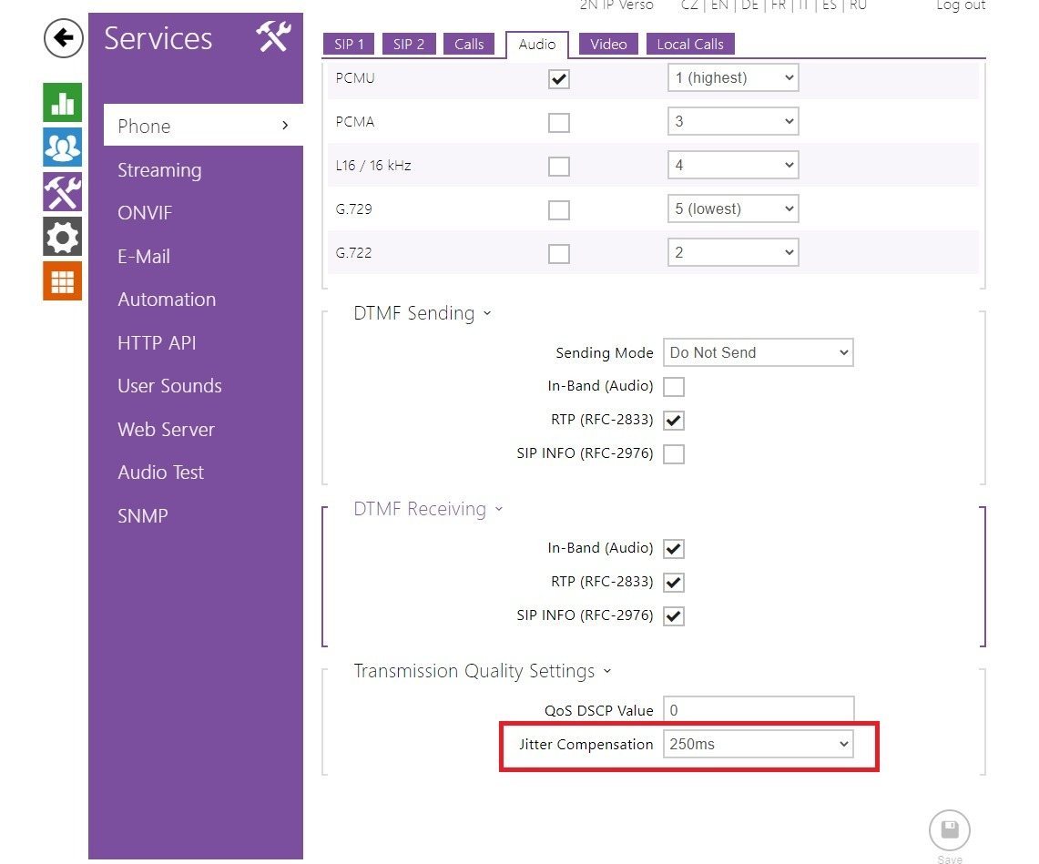 Jitter Compensation = 250ms