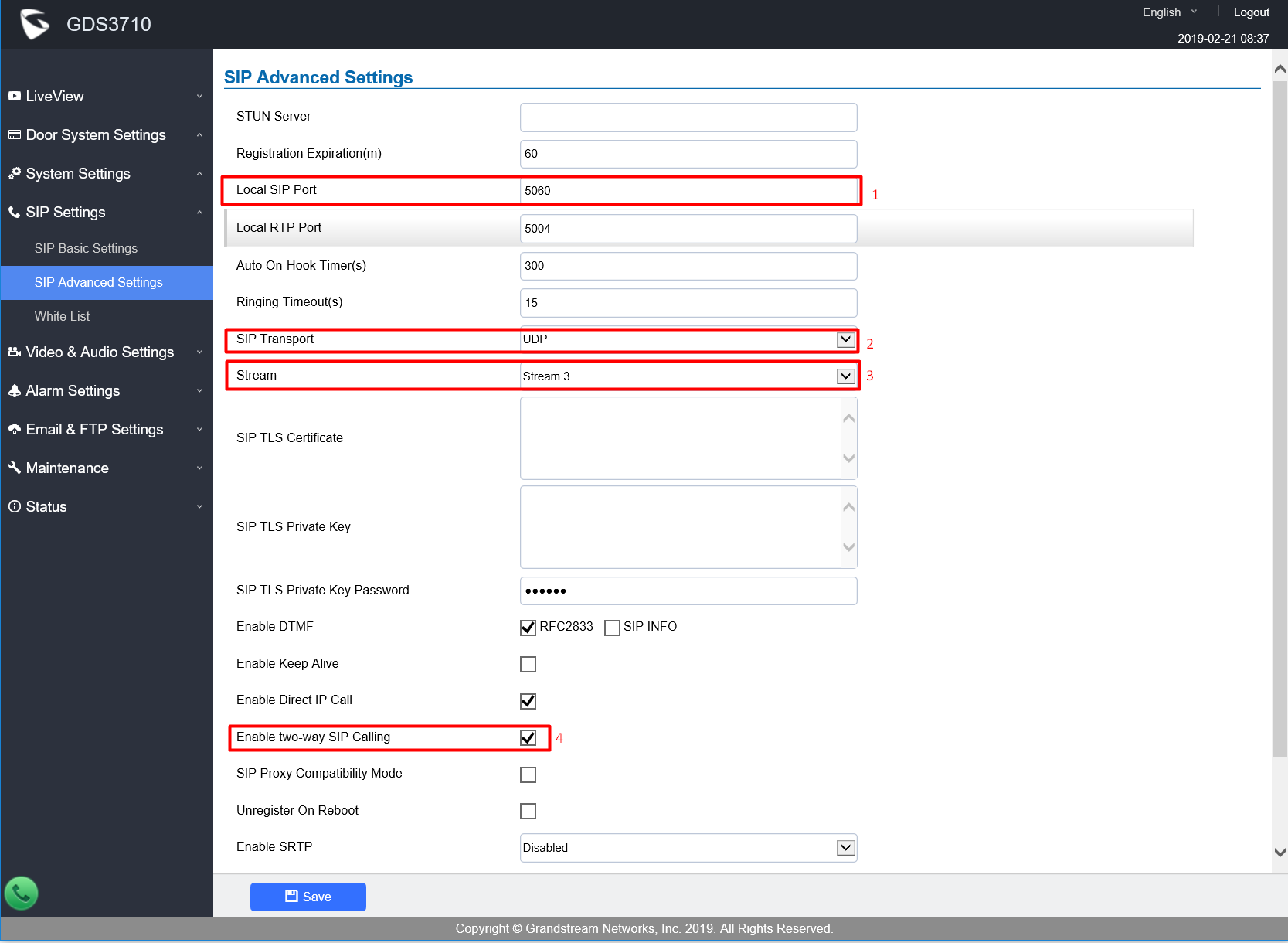 - Port SIP lokal harus diatur ke 5060, memastikan koneksi standar untuk komunikasi SIP.