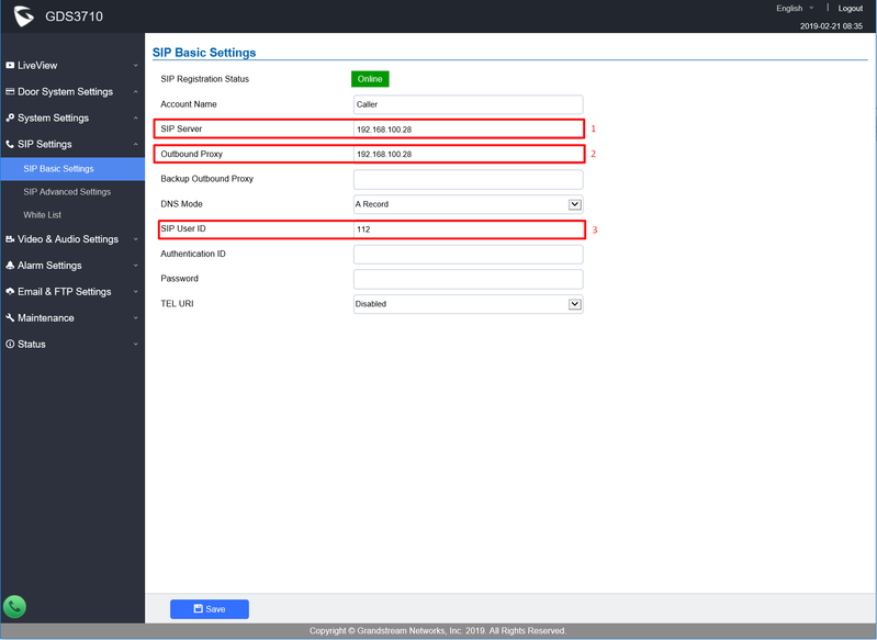 - Tetapkan alamat IP TapHome Core sebagai alamat server SIP, memastikan komunikasi yang stabil antara perangkat dan sistem.