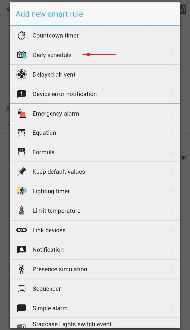 - Tambahkan Jadwal Harian Smart Rule (contoh pertama) yang akan mengontrol pencahayaan pagi.