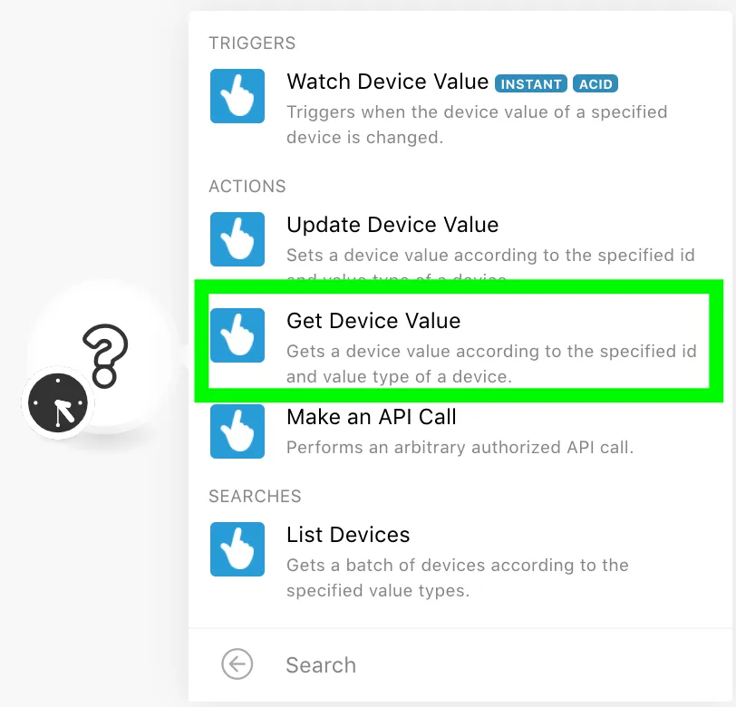 - Klik field "Status" → Pilih "Get value" → Pilih "Device_status"