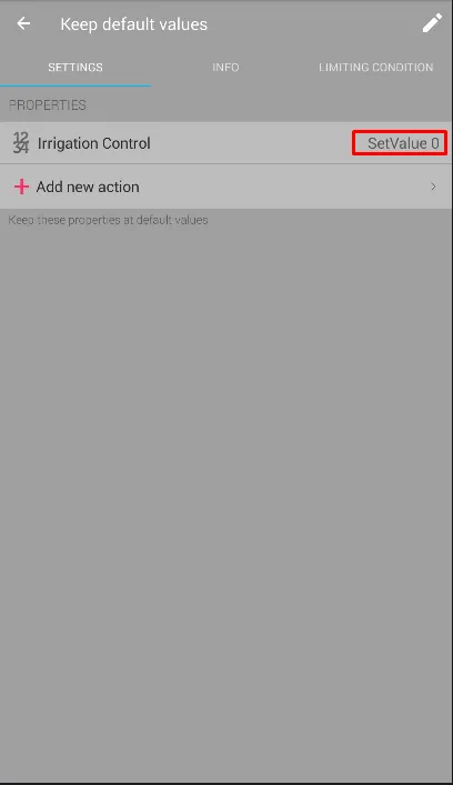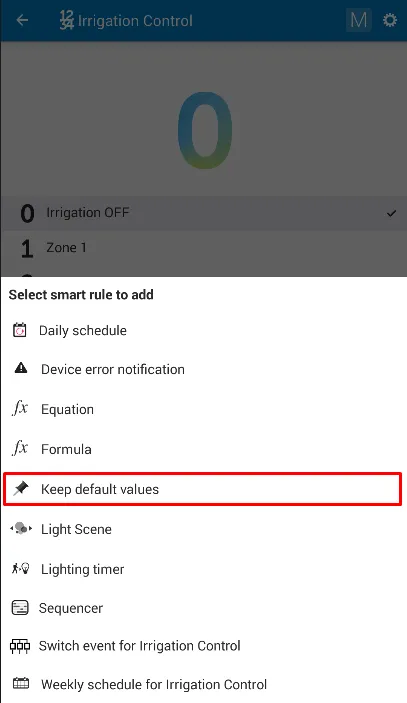 Menambahkan Smart Rule "Keep Default Values" untuk "Irrigation Control"