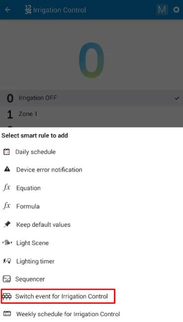 - Buka "Irrigation Control" di aplikasi TapHome.
