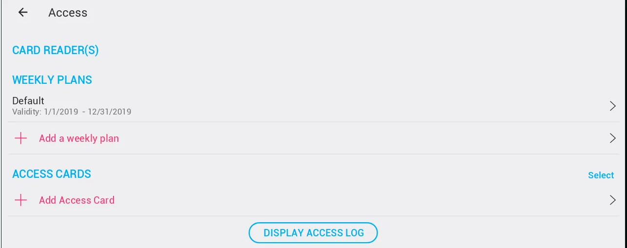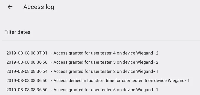 Mengklik DISPLAY ACCESS LOG akan menampilkan log akses seperti yang diharapkan untuk semua pembaca kartu:
