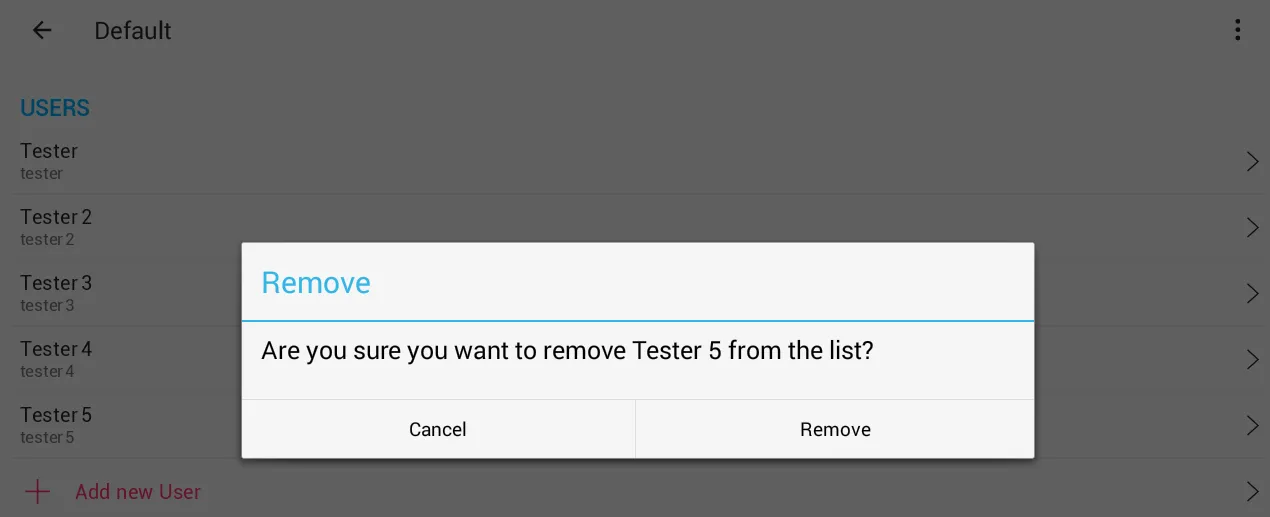 Untuk menghapus pengguna, klik pengguna tersebut dan konfirmasikan atau batalkan pilihan Anda: