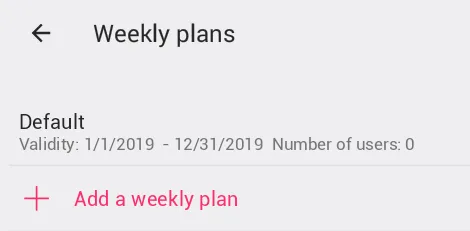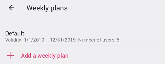 Setelah menambahkan rencana mingguan untuk pembaca, rencana tersebut akan tercantum dan mengkliknya akan membuka halaman penambahan/penghapusan pengguna.