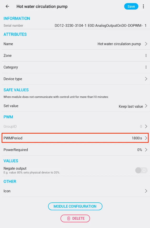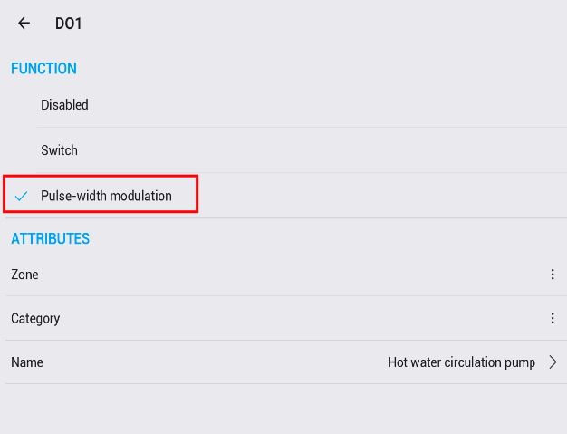- Buka modul output TapHome yang terhubung dengan pompa sirkulasi