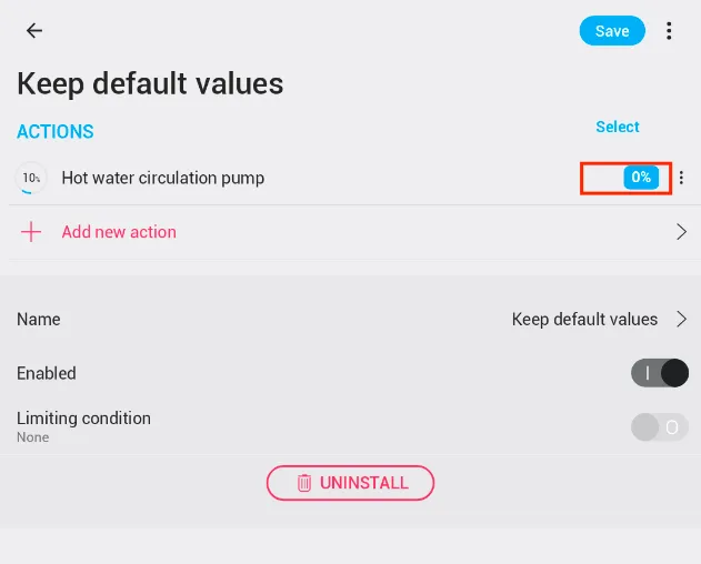 - Pilih "Keep default values" di perangkat pompa sirkulasi