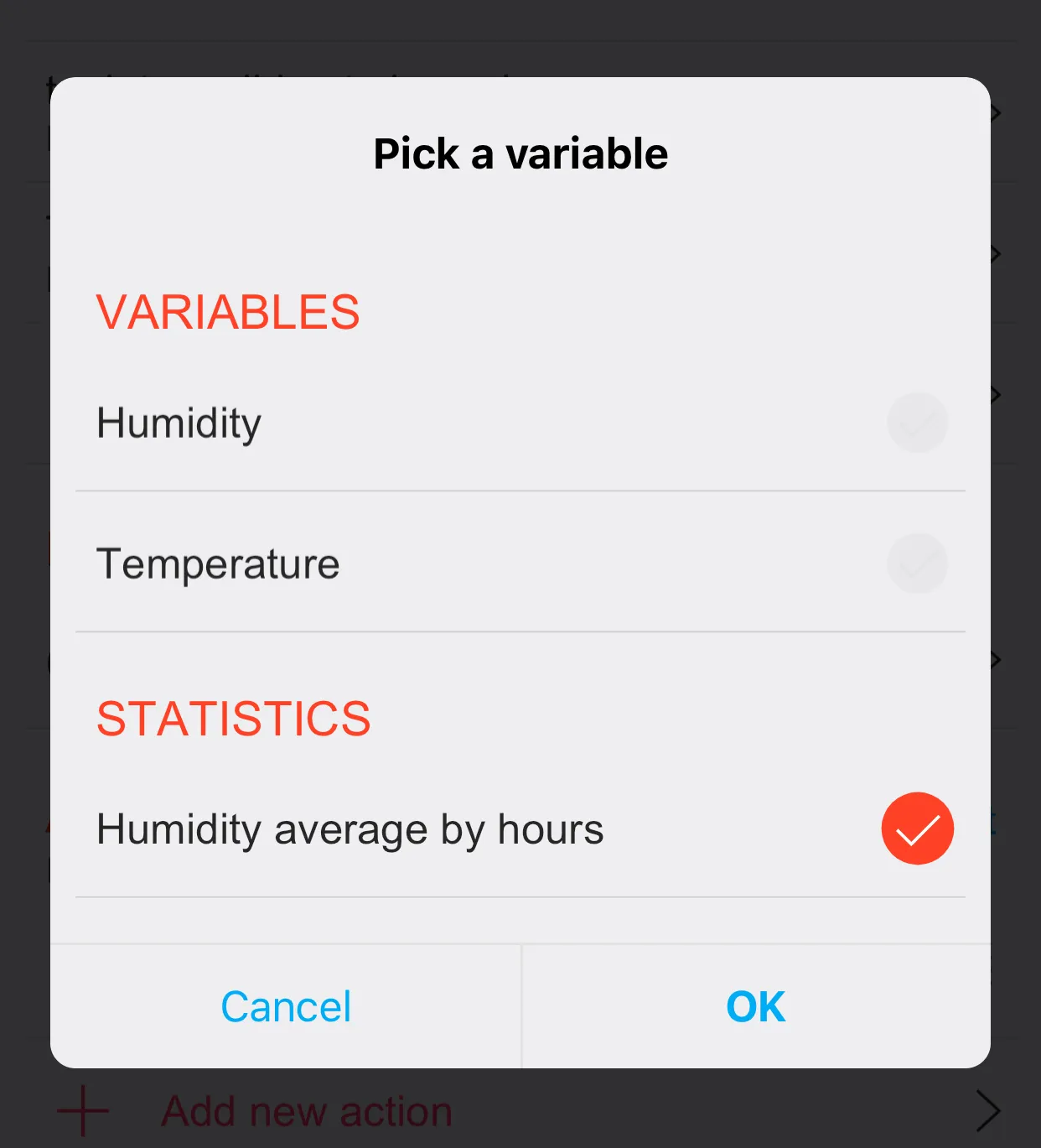Di bagian Variabel, pilih perangkat dan pilih salah satu nilai statistik yang telah ditentukan sebelumnya: