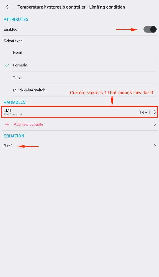 • Temperature Hysteresis Controller hanya akan aktif (Enabled) ketika LMTI Reed Contact mengirimkan nilai 1, yang menandakan Low Tariff (tarif rendah) dan pemanasan diizinkan.