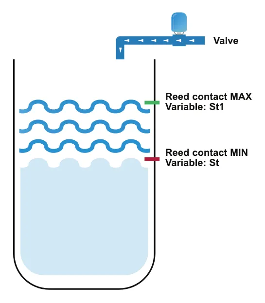 • Reed Contact untuk Level Maksimum (Nama Variabel: St1)