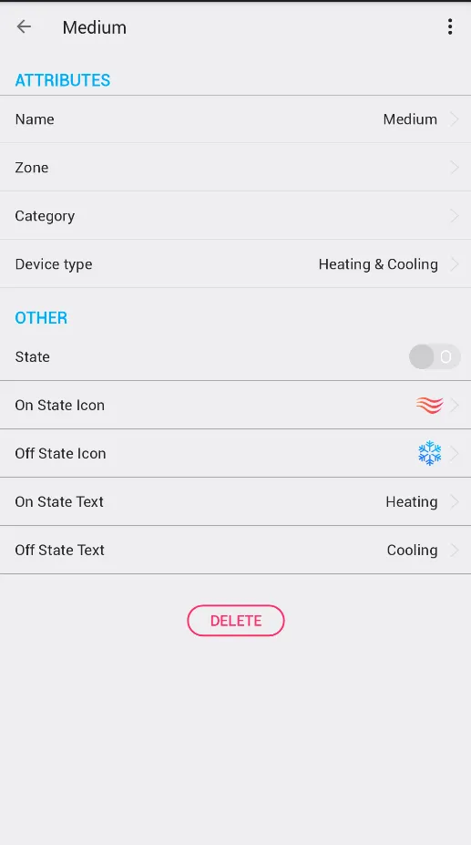 - Buat sakelar virtual 'Sedang' dan gunakan jenis perangkat 'Pemanasan & Pendinginan' dalam pengaturan layanan.