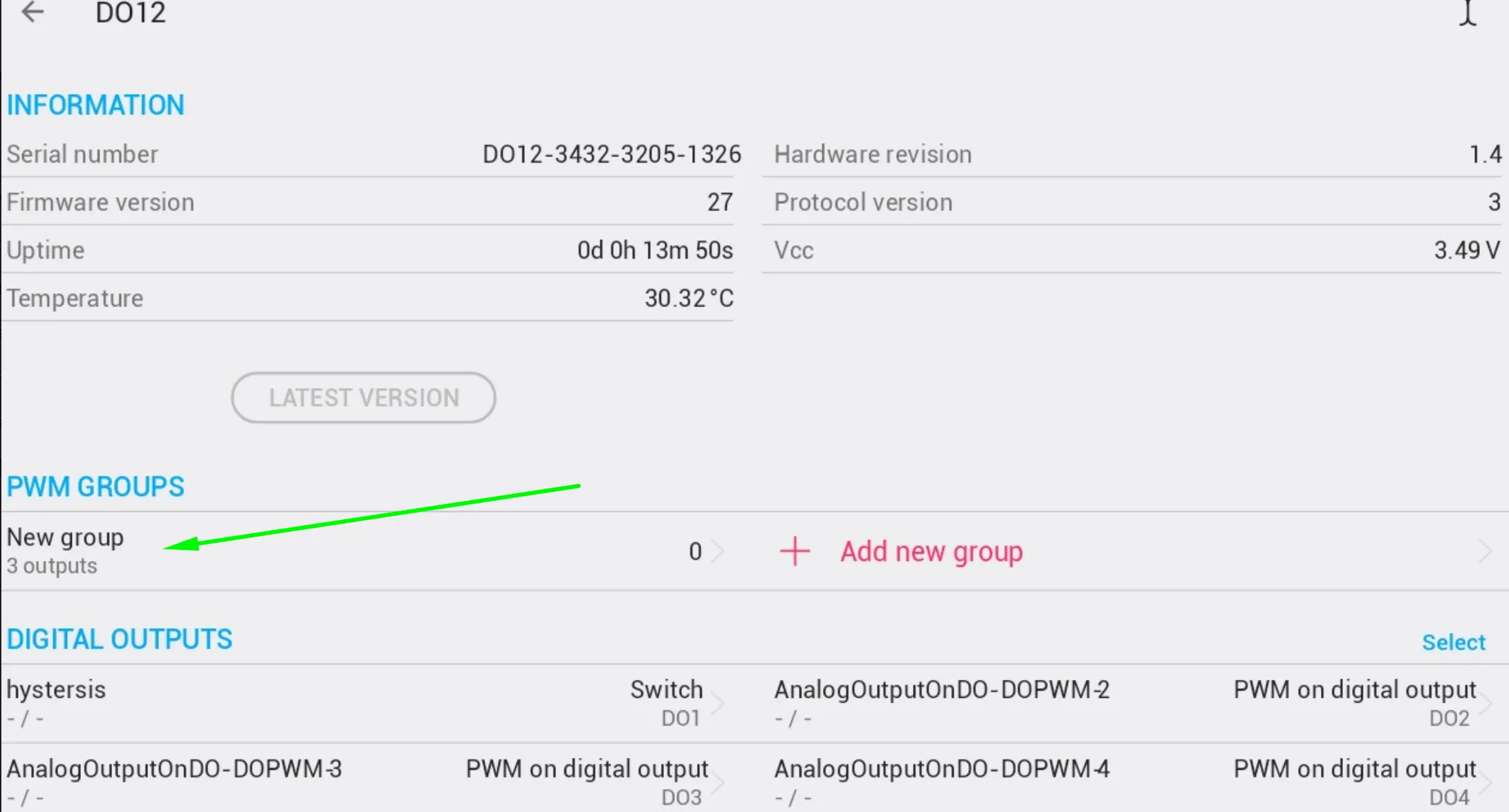 Pergi ke Menu → Perangkat → Modul 12 DO dan atur output menjadi PWM pada output digital.