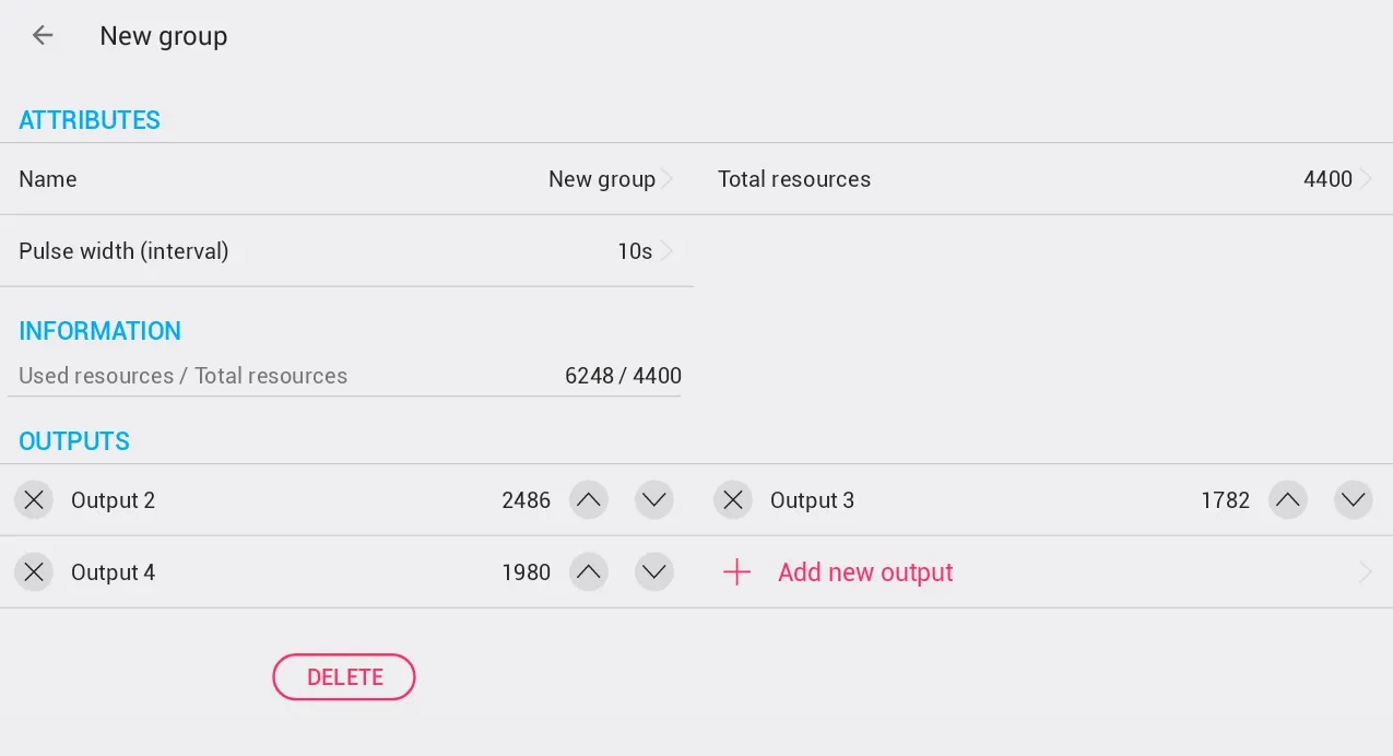 - Tambahkan output baru dan tetapkan konsumsinya dalam Watt.