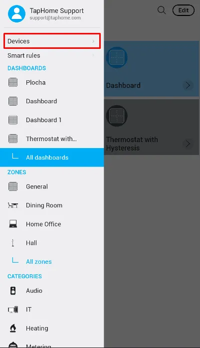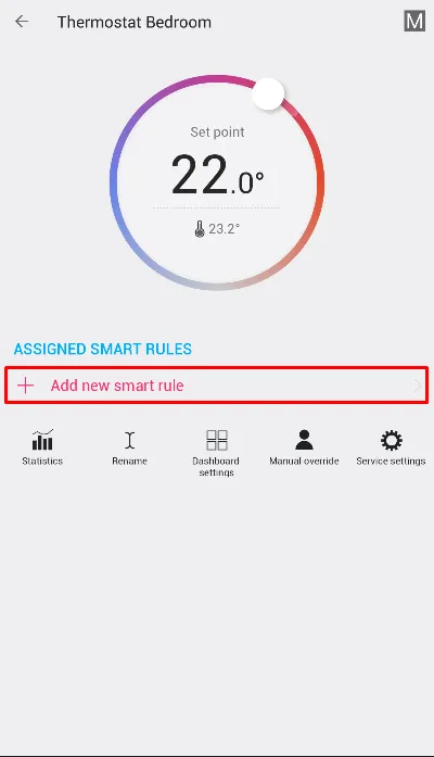 1. Untuk membuat Termostat Virtual, buka PengaturanPerangkat virtualTambah perangkatTermostat.