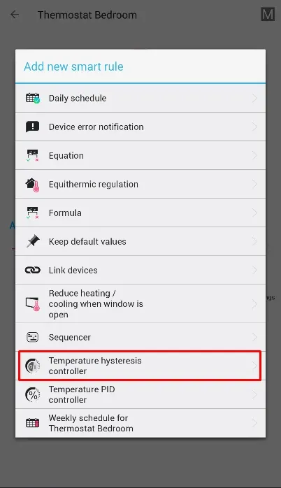 1. Tambahkan Aturan Pintar Pengendali histeresis suhu dengan pengaturan berikut