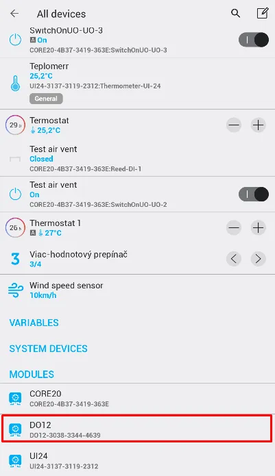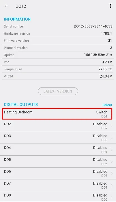 1. Untuk membuat aktuator keluaran, buka modul keluaran di mana keluaran nyata berada dan aktifkan keluaran ini sebagai "Saklar". Relay keluaran ini akan mengendalikan elemen pemanas terkait.
