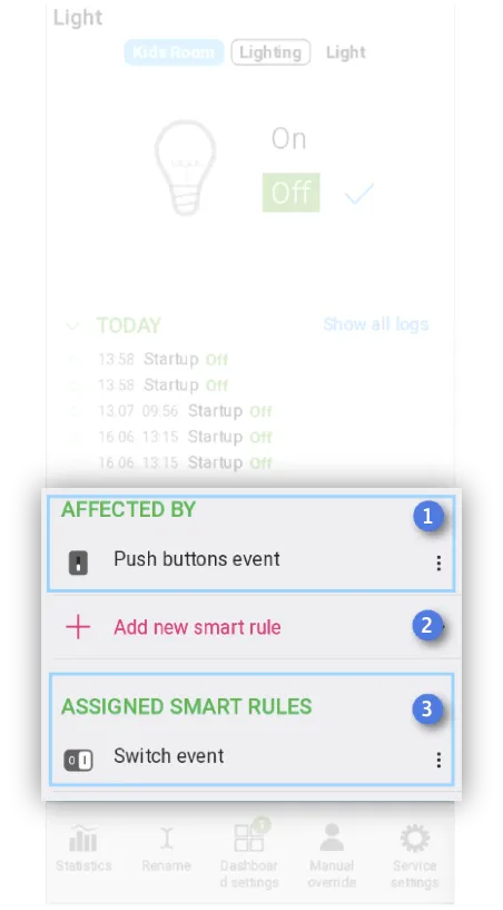 - Daftar Smart Rules yang mengontrol perangkat ini