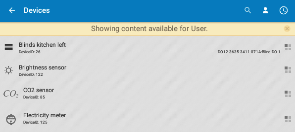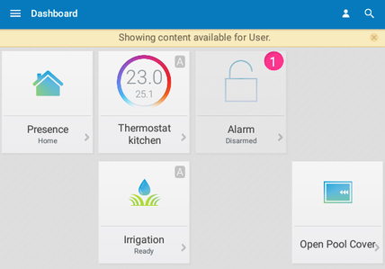 - Jika Pengguna Service mengatur izin, Pengguna biasa (User) dapat dibatasi untuk tidak melihat perangkat sistem tertentu, seperti suhu sirkuit air panas.