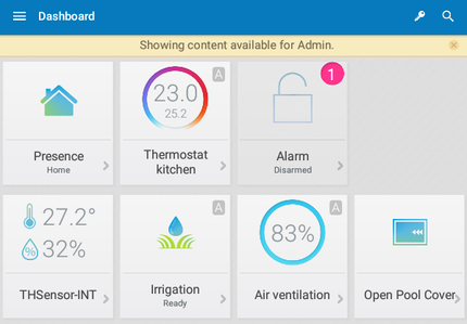 - Gunakan ikon di pojok kanan atas untuk mendapatkan gambaran cepat tentang apa yang dapat dilihat oleh kelompok pengguna Service, Admin, atau User.