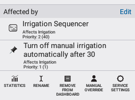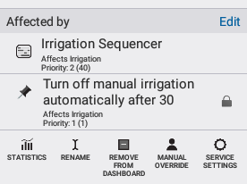 - User → Tidak dapat melihat atau mengubah Smart Rules terkait irigasi. Selain itu, pengguna tidak dapat mengubah pengaturan Manual Override, mengganti nama perangkat, atau mengakses pengaturan Service.